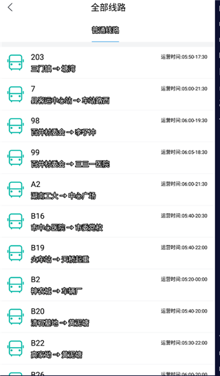 4、点击全部路线,它会为用户展现出所有的公交班次及路线;
