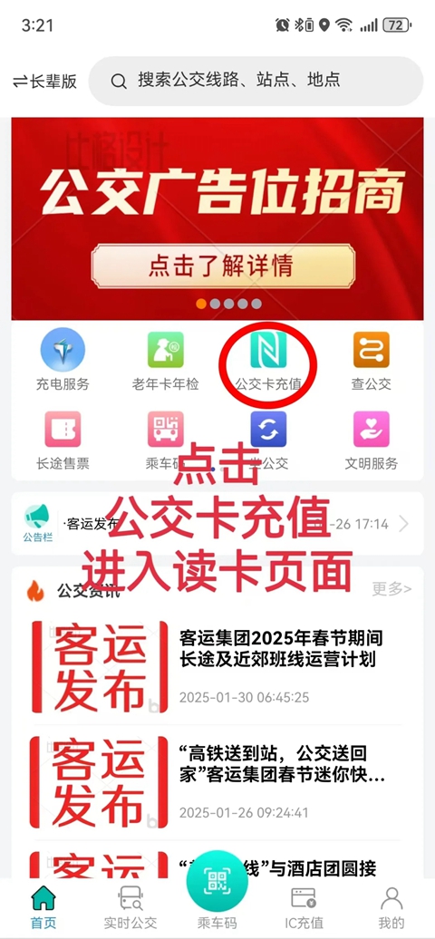 公交资讯推送:及时发布线路调整、临时改道、节假日运营安排等重要通知;