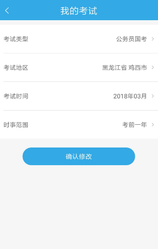 3、新用户在注册后填写正确“我的考试”信息后,点击题库会默认相关考试类题库。老用户可以在个人中心修改考试信息后退出APP,重新打开APP后题库也自动匹配。