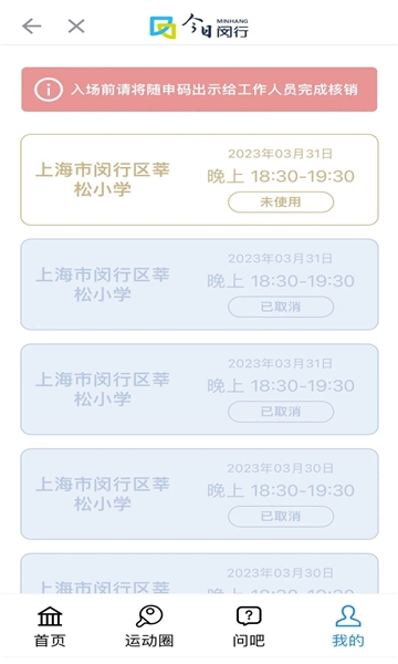 在“今日闵行”客户端首页,点击“学校体育场地预约”