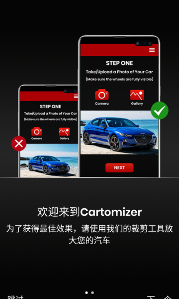 拍摄/上传汽车照片,需要确保车轮完整清晰,点击下一个。