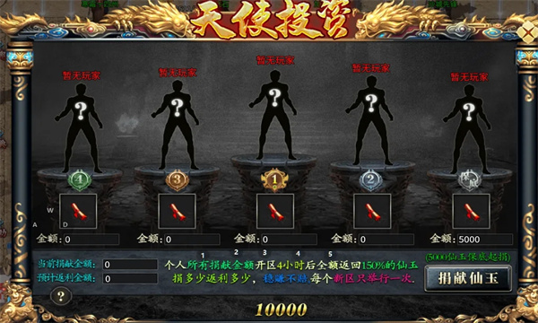 玩家可通过保底投资获得限时绝版称号,前期切割、金币回收最终全属性获得高幅度增强,投资后可在活动抓猪大赛、韭菜大王,结束后获得:个人捐献总金额+个人捐献总金额*50%的个人总返利金额,直接不缺货币与属性,稳赚不赔!!