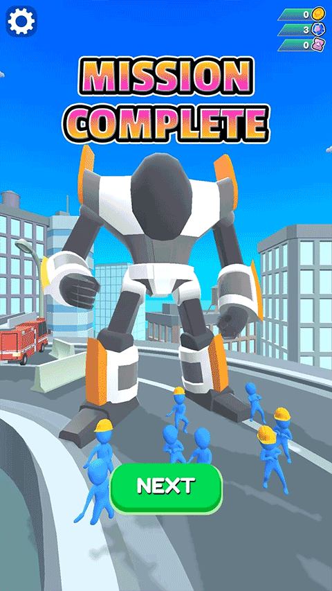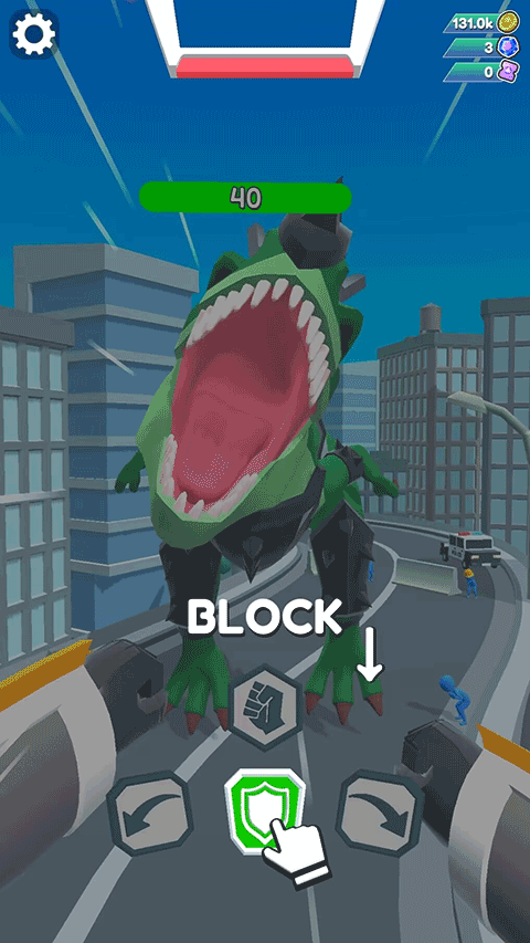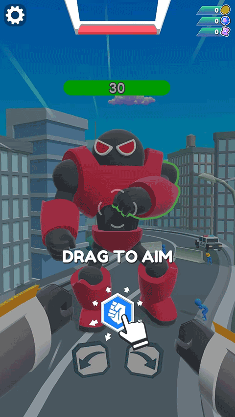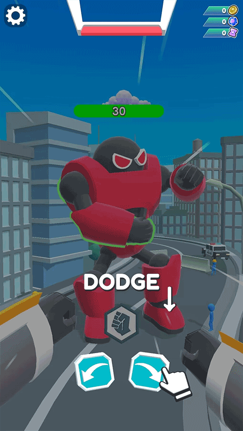 通过虚拟摇杆+技能按钮操控机甲移动、闪避、攻击。