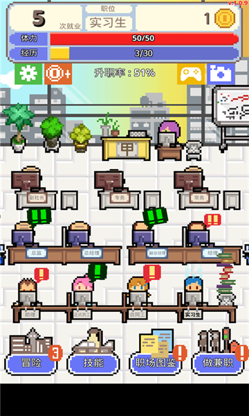 技能成长:通过完成特定任务和累积工作经验,玩家可以获得点数用于提升自身技能,帮助自己更好地适应职场变化。